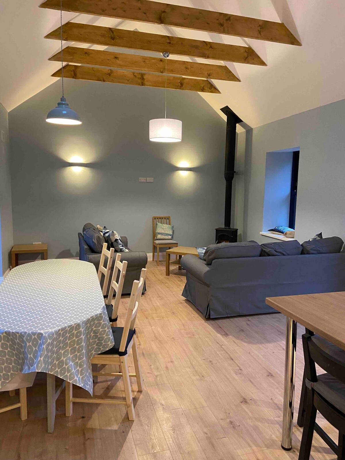 E Gray House es un refugio de lujo situado en un hermoso entorno forestal y justo en la vía verde de Waterford. Está a poca distancia en bicicleta de la ciudad de Dungarvan y de varias playas. Aunque puede que te resulte difícil salir del elegante y cómodo interior cuando estés sentado frente a la estufa leyendo un libro o viendo tus programas favoritos proyectados en nuestra pantalla retráctil de 180 cm. Hay una hermosa vista al mar desde el acogedor dormitorio del altillo que te persuade suavemente para que disminuyas la velocidad y disfrutes del tiempo fuera.