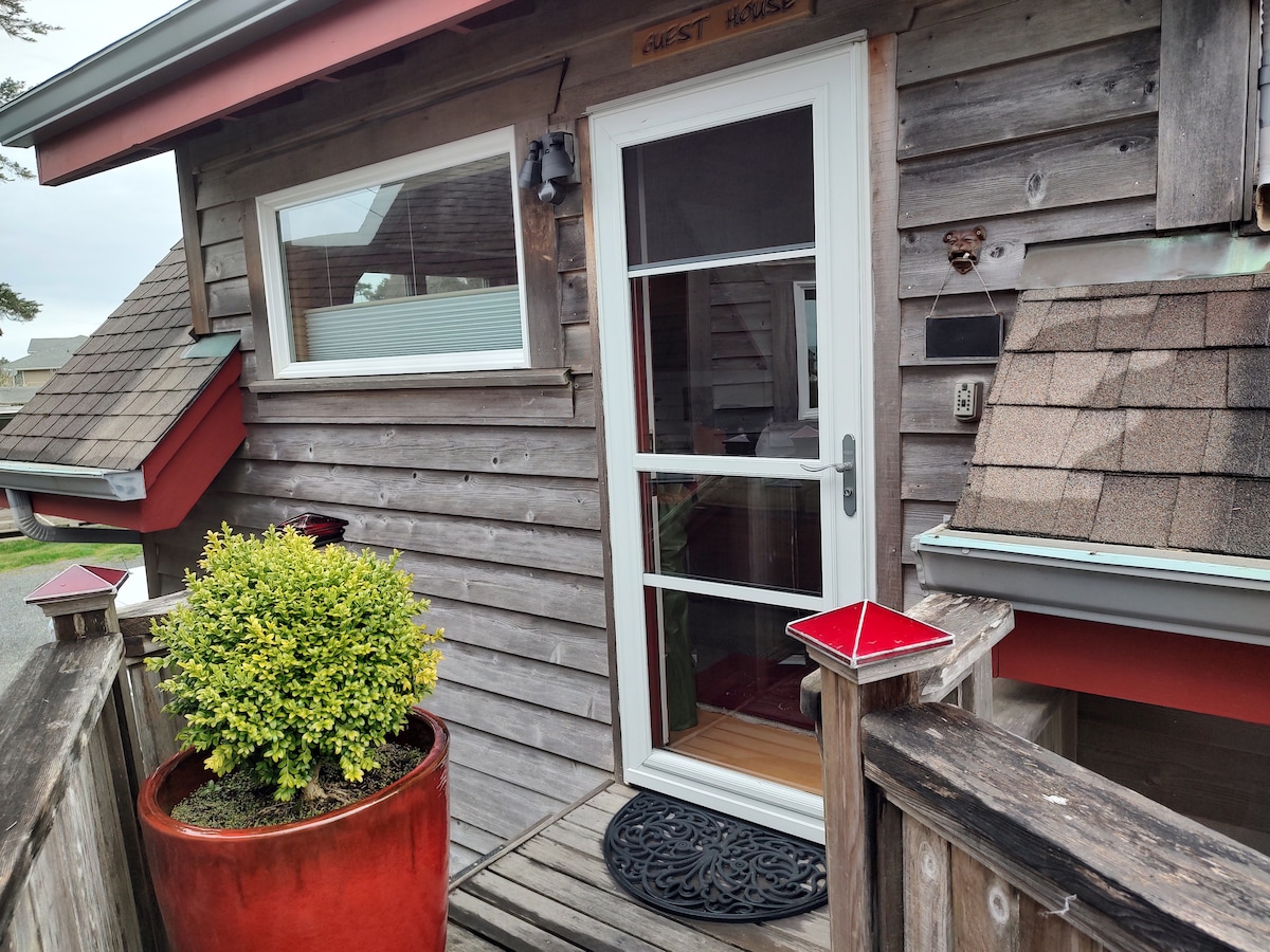 Nuestro bonito y acogedor apartamento estudio está siempre limpio y desinfectado. Perfecto para dos personas con vistas variadas al mar. La suite tipo estudio está separada de la casa principal, tiene entrada privada y está a 3 minutos a pie de nuestra playa casi aislada. Nuestra bañera de hidromasaje personal está disponible para tu uso. Se admiten mascotas, sin embargo, debes tener aprobación para traer a tu mascota, ya que tenemos estipulaciones y una tarifa de limpieza de mascotas. La encantadora playa Cannon y Manzanita están a solo 4 millas de distancia.