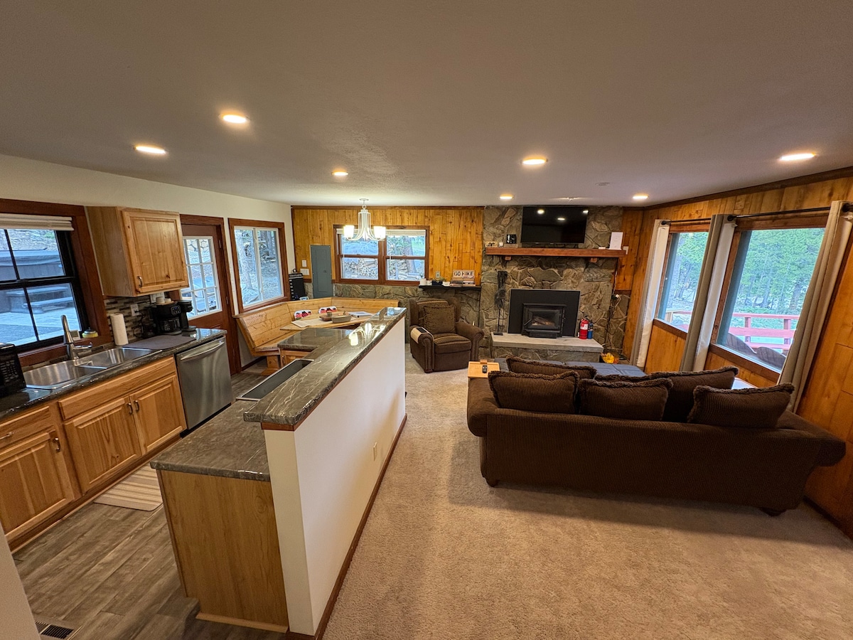 Unidad de invitados en una casa de troncos en Georgetown Lake. Esquía en varios centros vacacionales cercanos en invierno (Loveland a 15 minutos). Las rutas de senderismo y ciclismo te esperan a la puerta principal, así como la pesca, el rafting y la tirolesa. El anfiteatro Red Rocks está a 35 minutos. Varias zonas de aguas termales se encuentran dentro de paseos panorámicos. La unidad frente al lago tiene una entrada independiente desde el piso ocupado por el propietario y cuenta con una cocina gourmet, comedor y sala de estar, dos dormitorios, dos baños, lavandería, estacionamiento para dos coches, porche y parrilla.