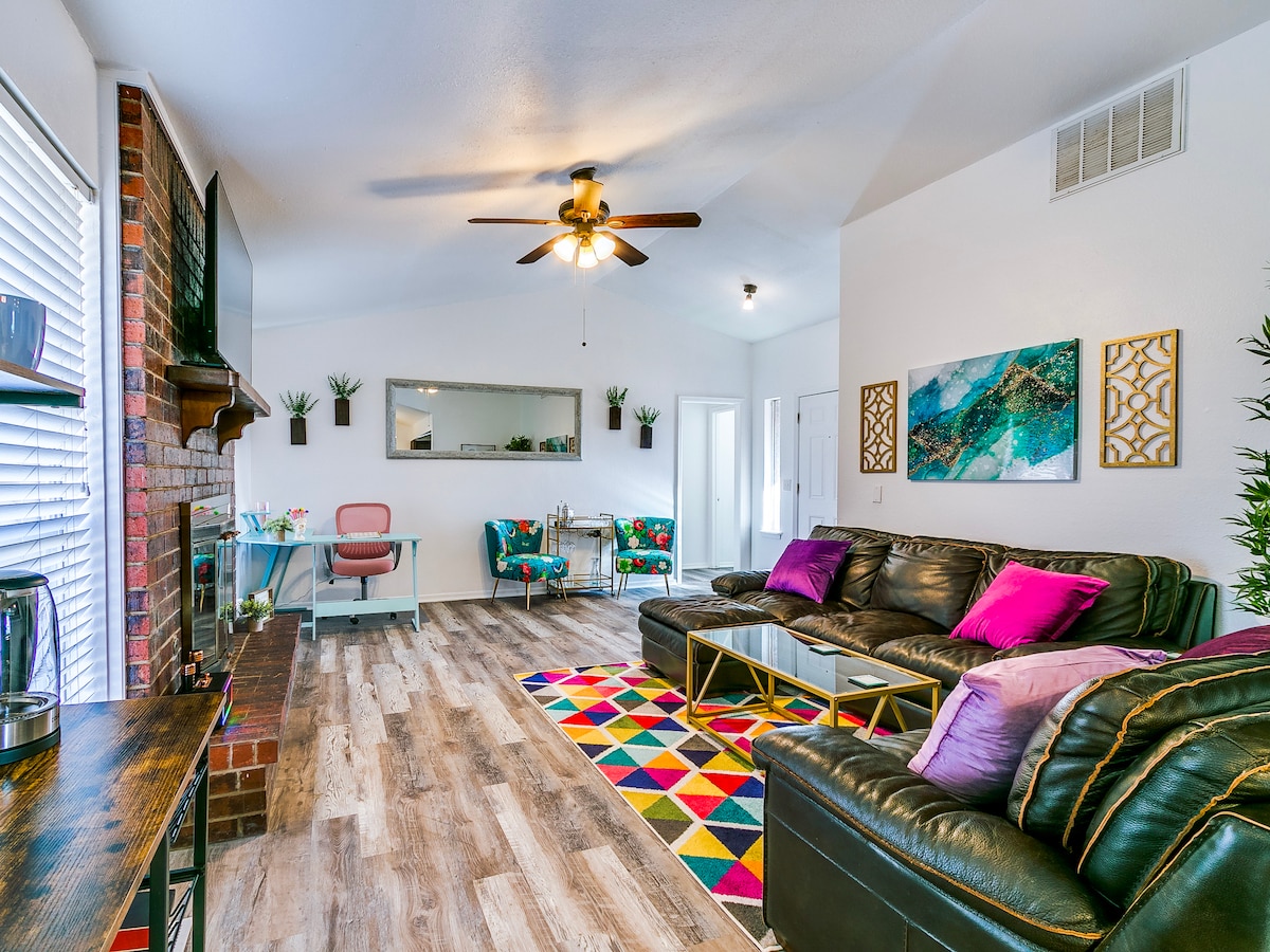 Welcome to Casa de Cola, inspired by our passion for the famous soft drink! Newly remodeled (2022), this bright home is located in a quiet neighborhood in the heart of Norman. Just 2 miles from OU, you can enjoy all that the University offers-sporting events, museums, entertainment + all the great restaurants and shopping. Close to I-35, a trip to OKC to enjoy a Thunder game, or Bricktown will take you less than 30 minutes.