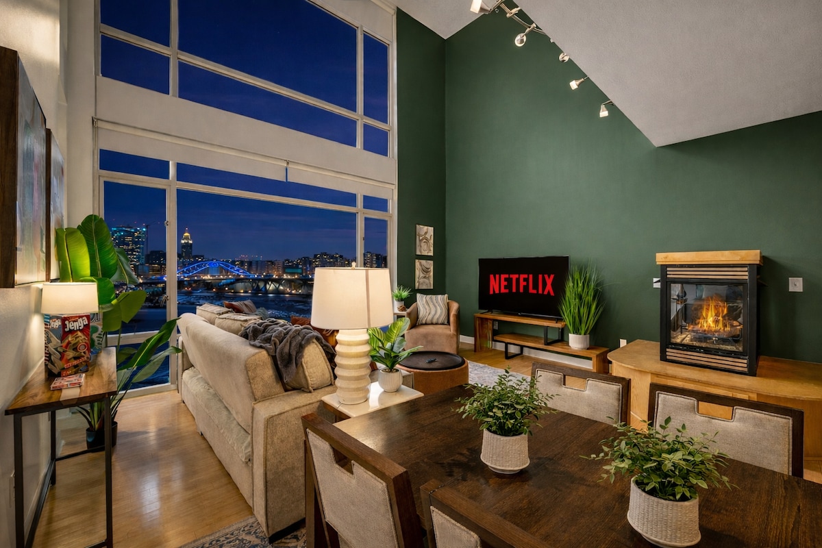 Ubicado en el centro de la ciudad, un condominio de 4 camas y 2,5 baños cuenta con un diseño abierto, pisos históricos de arce, una cocina elegante, tragaluces dobles, pisos de resina de epoxi y una gran ducha a ras de suelo. Disfruta de acceso sin llave y de la posibilidad de caminar a estadios, centro de convenciones, frente al lago, vida nocturna, restaurantes de lujo y el casino JACK. Una lujosa suite principal cuenta con un baño privado con una amplia ducha a ras de suelo. Cuatro dormitorios distintos: 1 King, 2 reinas y 1 litera individual. ¡UBICACIÓN! ¡Acceso a SoulSpace Wellness!