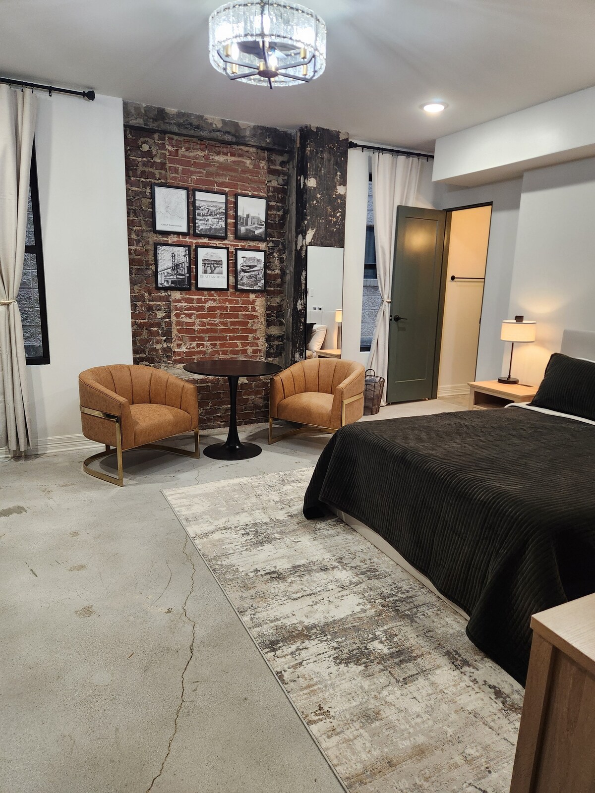 Este edificio especial de 100 años se construyó para recrear el famoso edificio Flat Iron de Nueva York en Manhattan. Fue completamente restaurado y renovado en 2024 e incluye estacionamiento cerrado en el centro de la ciudad. Se conservó la belleza histórica de los exteriores, ¡pero el interior es 100 % nuevo! Captura la elegancia y el lujo de un edificio de Manhattan de alta gama, al tiempo que complementa el encanto histórico en el exterior. Es realmente una experiencia de huésped increíble y única en el corazón del centro de Chattanooga que no se puede igualar.