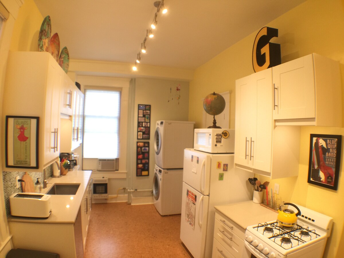 ¡Recién remodelado! Dormitorio tamaño king, sala de estar, cocina completa y baño, lavandería y estacionamiento seguro en el sitio incluido (ideal para coches más pequeños). ¡Enorme ducha de 5' x 5'! Wifi, gran mesa de comedor/escritorio, TV 4K de 65 pulgadas. ¡El barrio más vibrante de la ciudad! Lo sentimos, no es apto para mascotas ni niños. Es un barrio bullicioso, divertido y urbano, ¡con lugares de música en vivo al otro lado de la calle! Los viernes y sábados son particularmente animados, no es el mejor lugar para descansar y relajarse, ¡es mejor para aquellos que quieren salir!