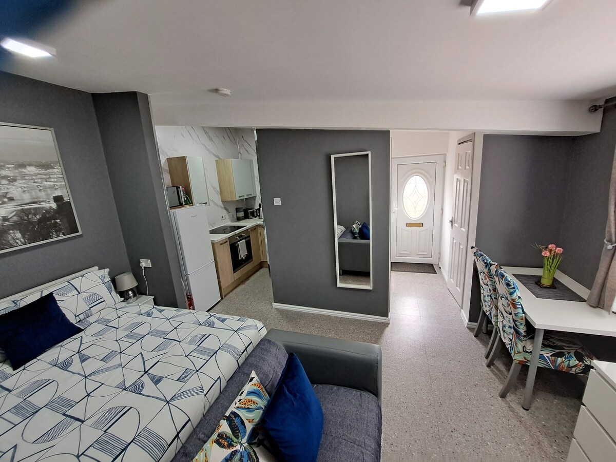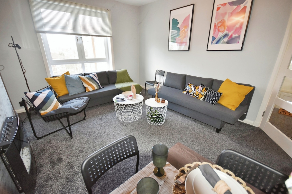 Nota: El precio que ves es el precio que pagas, con las nuevas tarifas de servicio de Airbnb. Muchos anfitriones aún no han adoptado los nuevos cargos, así que ten esto en cuenta al comparar con otros alojamientos. Apartamento luminoso, moderno y espacioso de una habitación en la planta baja, con entrada segura, estacionamiento privado gratuito fuera de la calle, excelentes conexiones de transporte y banda ancha rápida de fibra óptica. Una excelente base para explorar muchas atracciones, a solo seis millas del centro de la ciudad de Glasgow. El Aeropuerto de Glasgow está a 10 minutos por carretera, a través del nuevo puente de Renfrew.