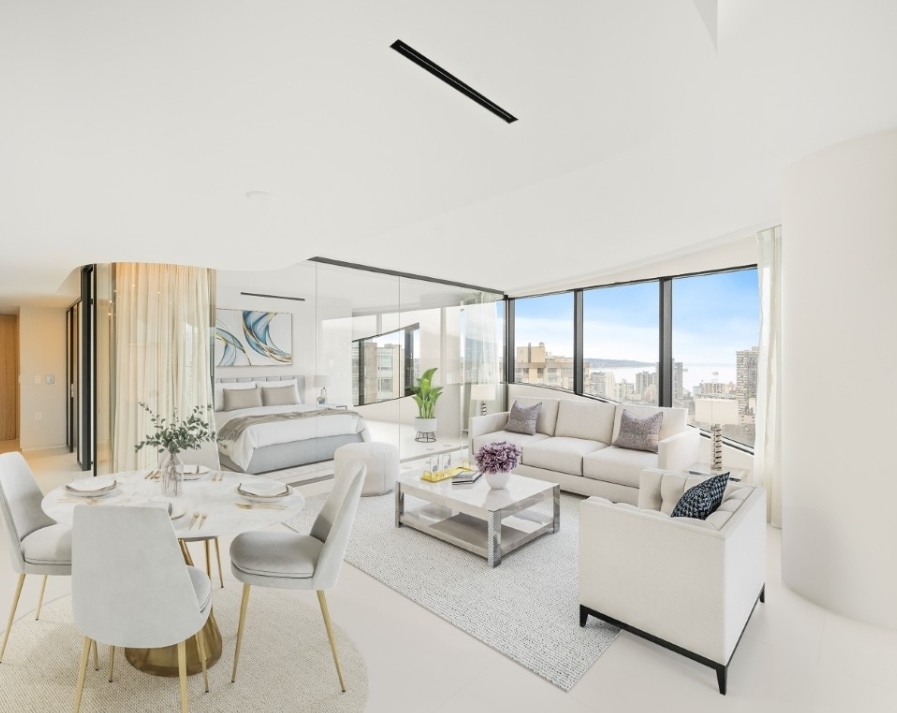 Apartamento de 1000 pies cuadrados en el piso superior con balcón en Coal Harbour