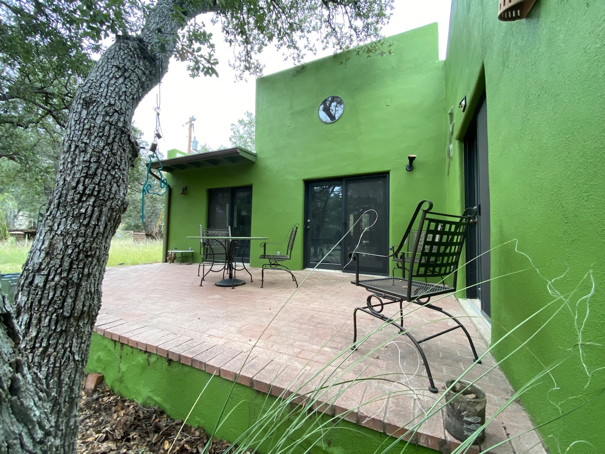 Desconecta de la rutina en este alojamiento único y relajante. Sal por la puerta principal y adéntrate en las montañas para vivir una aventura o relájate bajo los tranquilos robles y simplemente recarga las pilas. Esta clásica casa de ladrillo de adobe captura el lujo simple. Escucha el murmullo del arroyo, corre o ruge cuando lleguen las lluvias. Observa la sangre vital del desierto desde el puente privado que lo cruza. Trae tus caballos o cabras de carga y déjalos sueltos en el prado. Sumérgete en la quietud y disfruta de las noches estrelladas lejos de las luces de la ciudad.