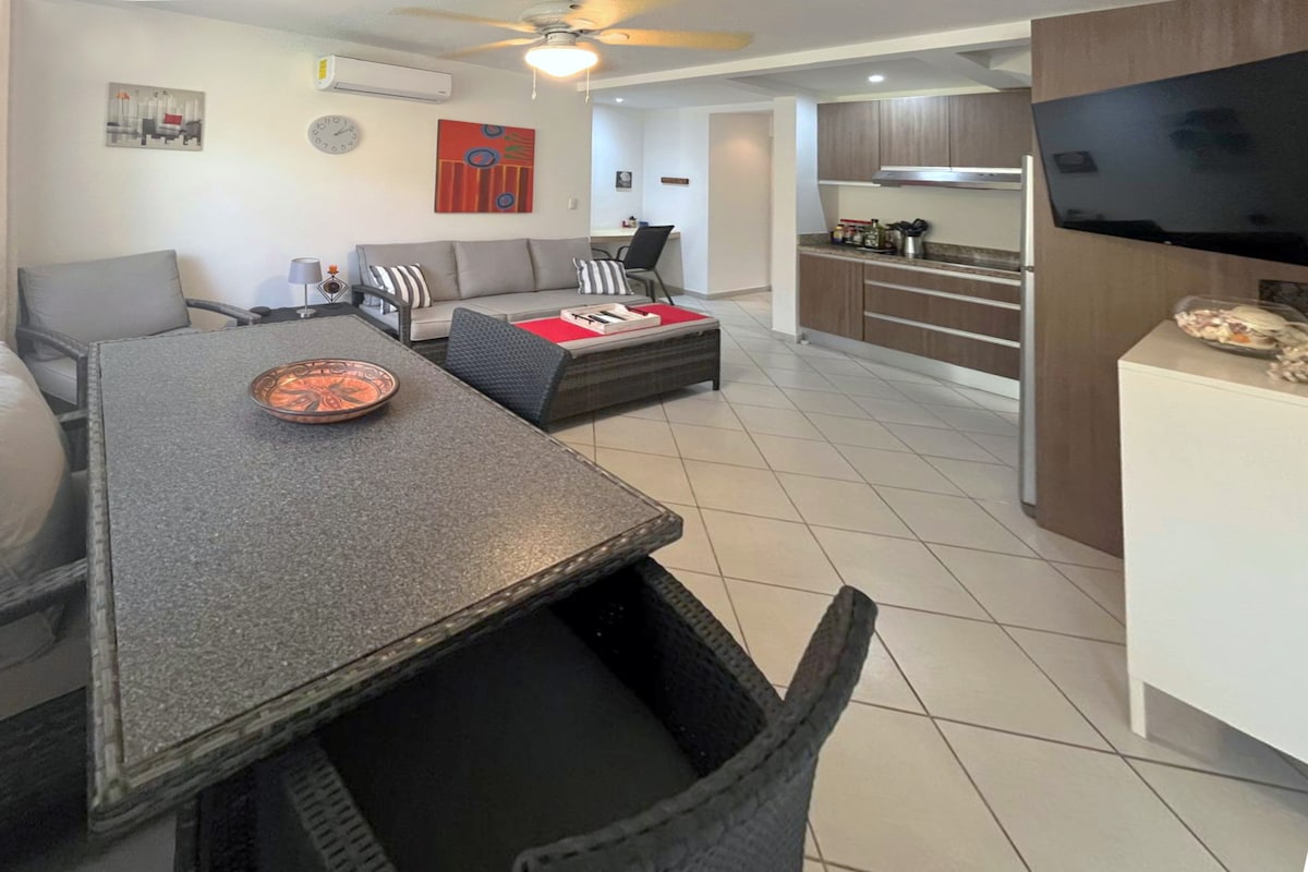 Sumérgete en una comodidad total mientras disfrutas de la brisa tropical del océano. Ubicado en una idílica playa semiprivada, simplemente abre las puertas del balcón para disfrutar de unas vistas impresionantes. Este apartamento tiene capacidad para un máximo de 6 personas. Cuenta con una cocina totalmente equipada y 2 comedores separados, todos con vistas al mar. Muy cerca hay restaurantes y excursiones que incluyen esnórquel, tirolesa, vela y mucho más. Así que, ¿a qué estás esperando? ¡Ven y disfruta!