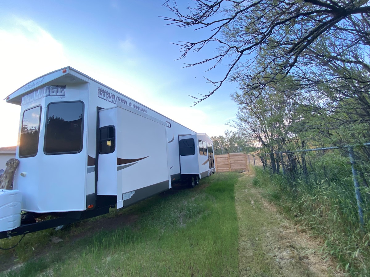 Lujosa autocaravana Western junto a un ARROYO, patio privado, SPA,