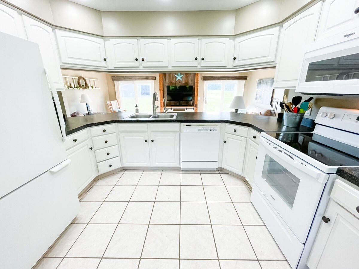 The Farmhouse at Hunters Ridge es un tesoro histórico absolutamente impresionante. Divertida, nostálgica y construida para grupos grandes. Se renueva y mejora continuamente. Increíble por dentro y por fuera. Cerca de Lansing, Ann Arbor, el centro de Howell y los estadios UofM/MSU. Con vistas al tee de salida número 13 de The Links at Hunters Ridge, disfruta de un 10 % de descuento en el golf. Crea recuerdos y sumérgete en la relajación, la sencillez y el encanto. Diseño de planta abierta y luminosa con 4 dormitorios con capacidad para 12 personas. Terrenos amplios. Se admiten mascotas y vehículos recreativos.