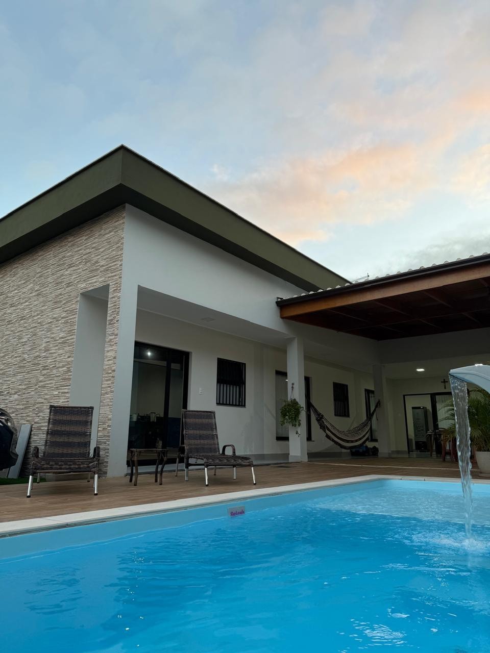 Piscina, churrasqueira, 4 qtos c/ ar 50 m da praia