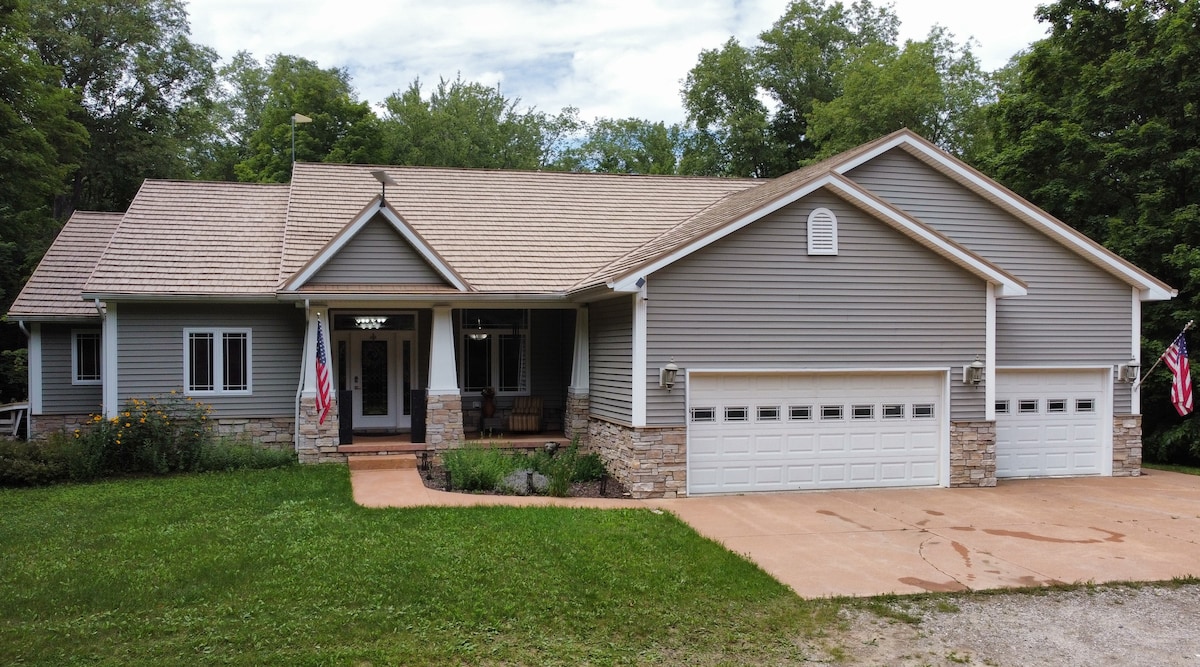 Encantadora casa de 3 dormitorios en Kalkaska con vistas al bosque, lagos y esquí cerca ¡Te damos la bienvenida a tu retiro perfecto en Kalkaska, MI! Esta acogedora y minimalista casa de 3 dormitorios y 2,5 baños ofrece la mezcla ideal de comodidad, privacidad y belleza natural. Con estacionamiento y conexiones para autocaravanas, ya sea que estés buscando una escapada tranquila, un viaje de aventura o una escapada tranquila rodeado de las maravillas de la naturaleza, este alojamiento es perfecto para familias, parejas y grupos de amigos.