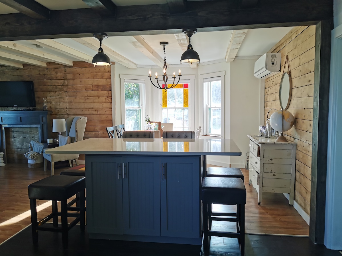 Ubicada en Bay Roberts, esta aislada casa de campo costera es una nueva construcción que ofrece un encanto rústico con un toque moderno junto con una hermosa vista al mar. Cuenta con 2 dormitorios, 1 baño, 2 zonas comunes y una cocina bien equipada. También cuenta con TV/Internet y un minisplit. En el exterior podrás disfrutar de la comodidad de un jacuzzi para seis personas, un estanque koi y la recolección de bayas en verano y otoño. El patio cubierto permite su uso durante toda la temporada. Ideal para familias y amigos que se reúnen.