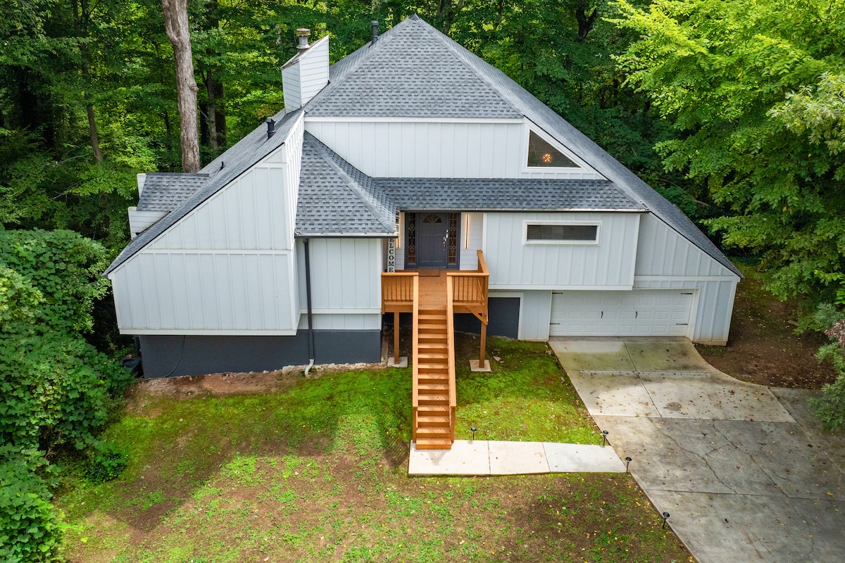 🎮 Juega, relájate y recarga energías en Greywind Retreat, una casa de concepto abierto en Atlanta con estilo moderno y NUEVOS pisos de madera. Capacidad para 10 personas con un colchón tamaño king premium, calentador de agua híbrido de gran tamaño, chimenea, televisores inteligentes y un loft arcade para noches de juegos retro. Cerca del ✈️ y del centro de convenciones; perfecto para familias o viajes de trabajo con internet rápido y oficina/impresora. 🛏️ Capacidad para 10 personas 🎮 Loft Arcade 🪵 Pisos de madera natural ⚡ 1‑Gig Wi‑Fi 🖥️ Oficina + Impresora 🍳 Cocina completa 🔑 Auto registro de entrada 🅿️ Estacionamiento gratuito
