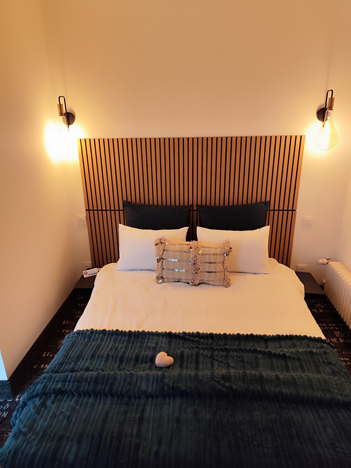 Disfrute de un alojamiento elegante y céntrico en Bellegarde, totalmente equipado con electrodomésticos, ropa de cama, TV 140 cm, lavadora, lavavajillas, nevera congelador, cocina, microondas, cafetera, tostadora, plancha, etc. Incluye un dormitorio con cama doble o 2 camas individuales (especificar con 24 horas de antelación) de calidad (colchón Bultex) y un sofá cama, es decir, un total de 4 camas. El apartamento orientado al sur (con balcón), nuevo y con una decoración cuidada.