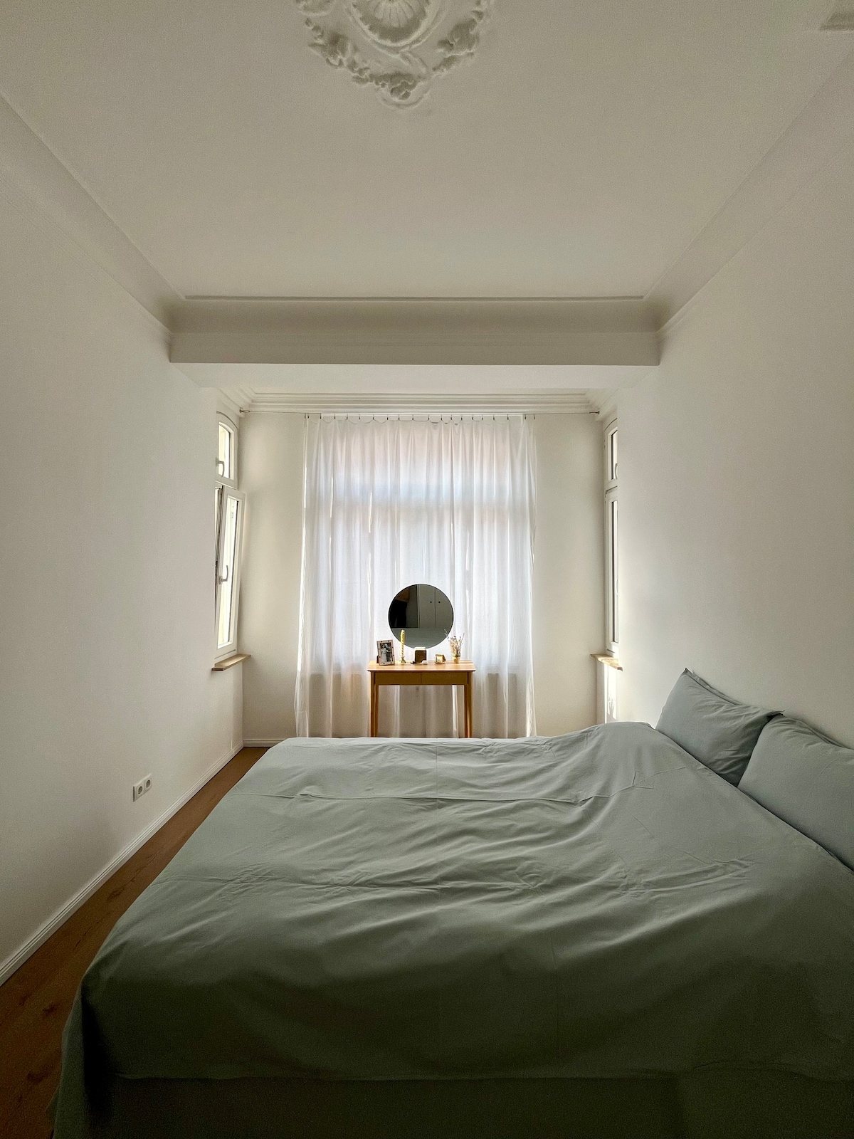 Luminoso apartamento de una habitación recién renovado (26 m²) con cocina americana y baño separado a poca distancia a pie de varias líneas de tranvía y autobús, así como de la estación de tren de Colonia-Ehrenfeld. El apartamento está situado en una tranquila calle residencial en el entresuelo de un edificio antiguo del siglo XIX. En el patio delantero, justo enfrente del apartamento, también hay una pequeña terraza con dos sillas de jardín y una pequeña mesa a su exclusiva disposición.