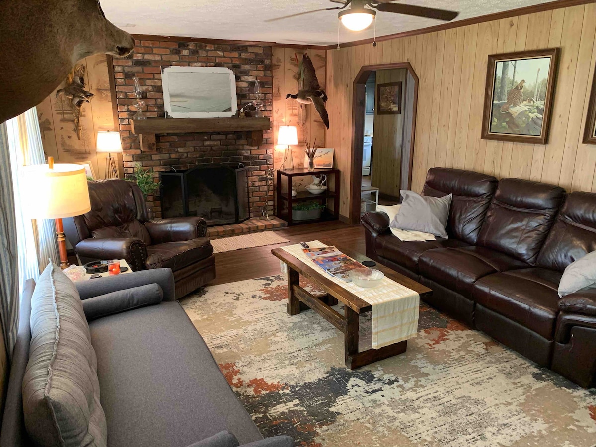 ¡Encantadora 3BR/3BA junto al estanque y escondida entre los árboles! Pintoresco paisaje con amplias comodidades y actividades. Espacio perfecto para que amigos y familias se reúnan. * Amplio comedor interior y exterior. *Kayak, pesca y paddleboard en un estanque de más de 2 acres *3 camas tamaño queen, 2 camas individuales y 1 sofá cama tamaño queen * Guardería con cuna + mecedora 2 patios con mosquiteros y cómodos asientos. Café + productos básicos abastecidos. Senderos naturales para explorar. ¡Avistamientos frecuentes de ciervos y aves! Abierto a eventos y reuniones; debe ser aprobado por el propietario.