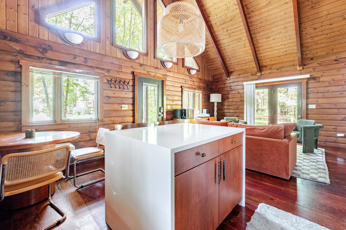 Lujoso refugio rural de mediados de siglo decorado con mucho cariño y ubicado a menos de 15 minutos de restaurantes, galerías y tiendas en el centro de Hudson, ¡entre mercados de agricultores, cervecerías, sidrerías, destilerías, rutas de senderismo y mucho más! La cabaña de 1958, recientemente renovada, cuenta con una bañera profunda, jacuzzi al aire libre, estufa de leña y servicios de lujo. Situado lejos de la carretera en medio de un bosque de pinos y manzanos, es el lugar perfecto para relajarse con lujo después de un día explorando las atracciones locales.