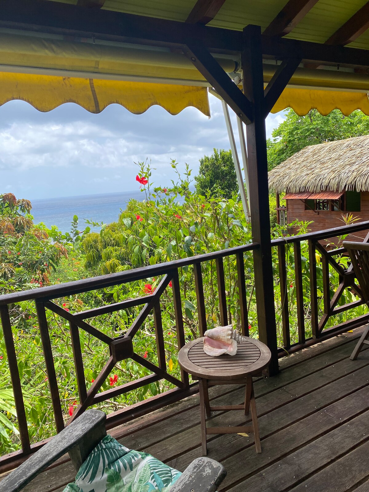 "LODGE ROSEWOOD": En el corazón de un jardín tropical con vistas al mar Caribe y a la montaña. 🤩Alojamiento con encanto para 2 personas.🥰 1 dormitorio doble (cama de 160x200 o 2 camas de 80x200), baño, inodoro, cocina, zona de comedor, terraza con reposeras. Un plantador y acras de bienvenida se ofrecen Mascarillas, tubos, aletas disponibles, si es necesario. Caja de libros. El lodge Rosewood ya no está disponible en sus fechas, puede consultar el anuncio del "COUNTRY LODGE" 😉