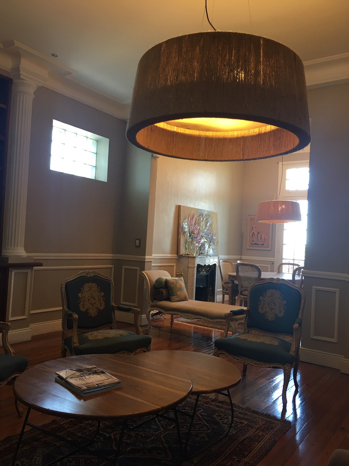 Cómodo y espacioso lugar con una gran terraza en la azotea. Sin pretensiones desde la calle, esta casa te robará el corazón. Sube por una escalera de mármol blanco para ser recibido por una escultura caprichosa de un artista local en el vestíbulo. Por un lado, puedes relajarte en una sala de estar con 3 balcones, una gran biblioteca y una estufa de leña. Al otro lado hay un comedor formal pero íntimo con un bar. El dormitorio principal tiene un amplio vestidor y baño privado con JACUZZI para relajarse a la luz de la luna.