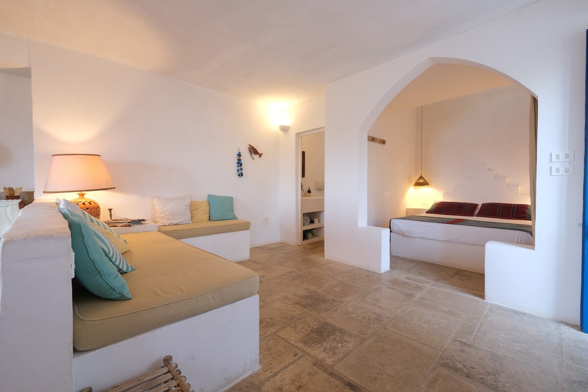 Este apartamento consta de dos dormitorios, un baño y un comedor. Se encuentra en un puerto deportivo caracterizado por la tranquilidad y la belleza. Esta unidad está flanqueada por otro apartamento, del que, sin embargo, es completamente independiente. El apartamento de al lado, que se puede ver en este mismo sitio, se llama «La Varchiceddra».