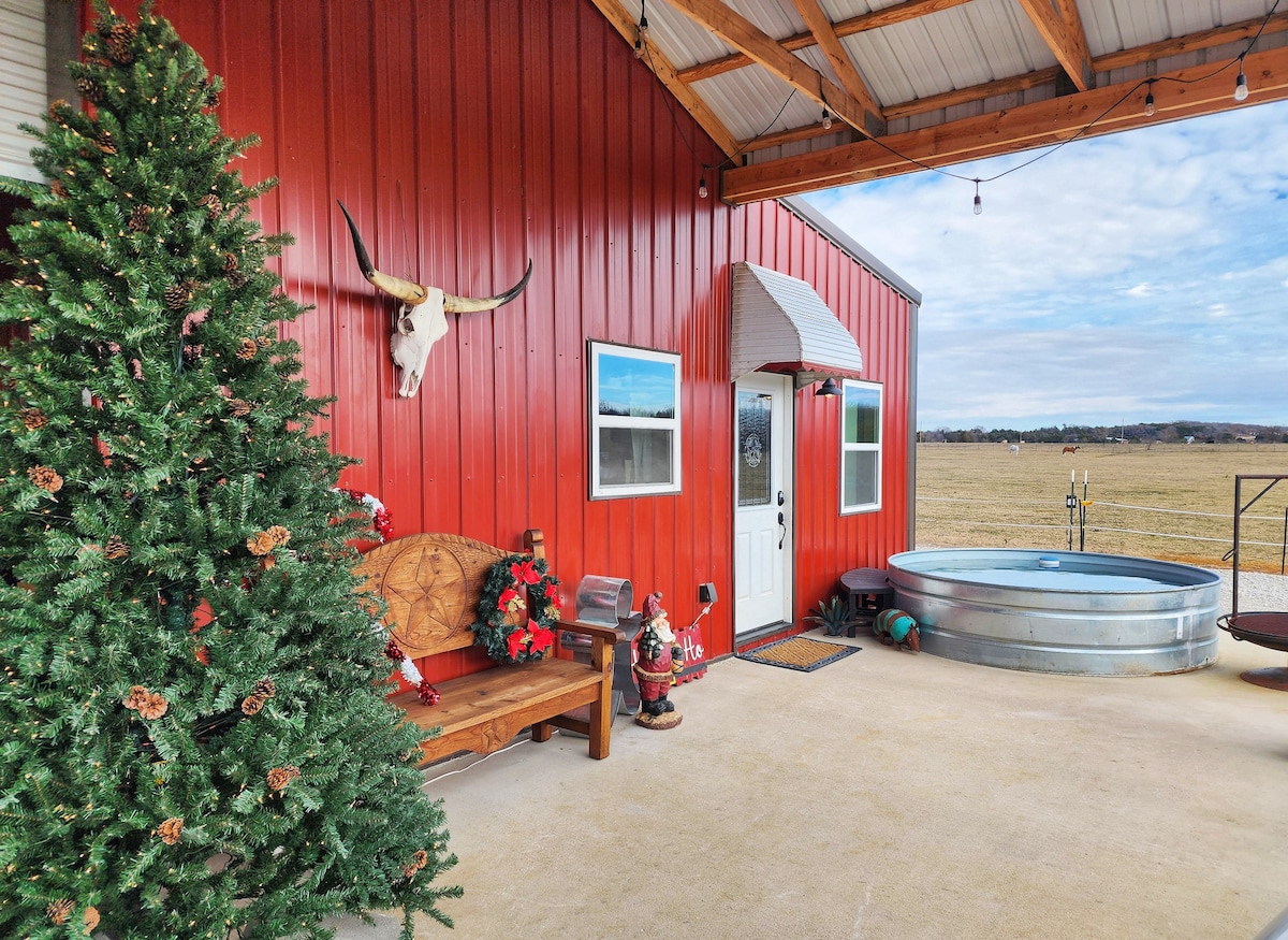 The Big Red Barn is located at Moo & Bray Farm, a forty acre ranch that raises highland cows and mini donkeys among other critters. Relax on the covered porch and watch the cattle graze or listen to the brays of the donkeys. Enjoy the Texas sunsets, a fire under the stars or a stroll around the ponds.