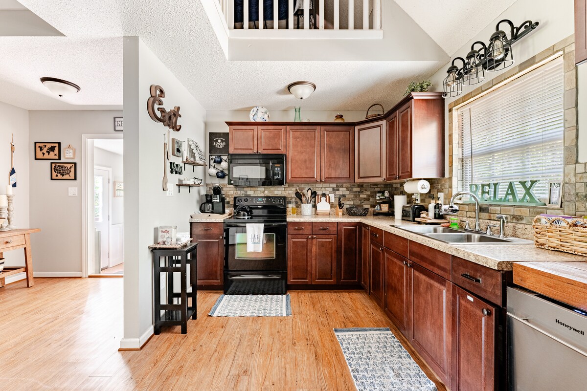 ¡RESERVA DIRECTAMENTE! Llama para las fechas disponibles. Hermoso y espacioso, este alojamiento se ubica en el lago Martin en el área de Parker Creek. Estamos cerca de Birmingham, Montgomery y varios lugares de interés locales. -Bloqueo en el alquiler: cocina/ baño renovado, pintura/pisos nuevos. - ¡Amplia suite principal con chimenea de gas y puertas francesas al lago! - El porche protegido con columpio y parrilla está hecho para entretener. - a minutos de lugares de interés en el lago Kowaliga Restaurant + The Landing. -3 kayaks disponibles para usar