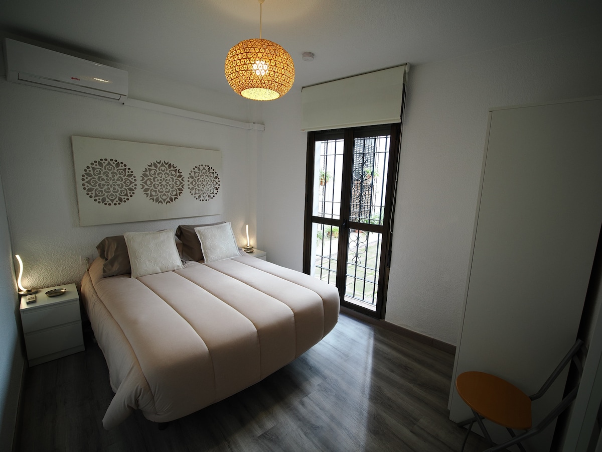 Precioso, cèntrico y amplio apartamento con 2 patios privados, fuente donde refrescarse,ducha, hamaca, sofás, comedor ! a 6 minutos a pie de La Mezquita. Con estupendos restaurantes y comercios en la zona todo a un paso!. Desayuno gratis! Recièn decorado, 2 TV Lcd smart tv Wifi free, cocina independiente, sofá y camas eléctricas con colchones muy cómodos, habitación silenciosa, armarios. Disfrutarás de una decoración cuidada y todos los detalles para una estancia confortable! No te defraudará!;)