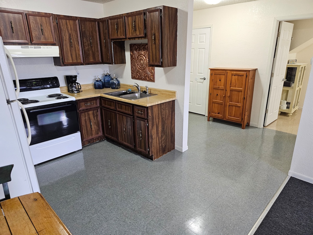 Una casa de dos pisos reformada de 1890 con vistas al Mississippi. La planta superior tiene 2 dormitorios grandes: uno con 2 camas de tamaño completo y el otro con una cama tamaño queen. Además, la sala de estar cuenta con un sofá cama, por lo que pueden dormir fácilmente 8 personas. La cocina ofrece todo lo necesario para cocinar una comida familiar y el comedor tiene una mesa grande. Disfruta del encantador baño vintage mientras te sumerges en la bañera con patas. Tanto si te alojas un fin de semana como si te quedas más tiempo, la lavandería cuenta con un lavabo, una lavadora y una secadora para que las utilices.