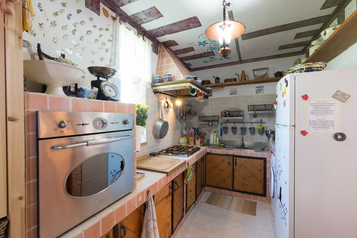 Una casa de campo hecha de piedra y madera construida en dos plantas, con una gran sala de estar, ventana de vidrio, un sofá para dos personas y un baño con sauna; en el segundo piso hay una habitación doble. Al aire libre, hay un gran jardín con un porche equipado con barbacoa y una mesa de madera. El sitio está ubicado en las agradables colinas entre Bellegra y Olevano Romano. Actualmente hemos agregado dos camas, instaladas en un maravilloso tipi indio disponible para dos huéspedes adicionales, además de las cuatro.
