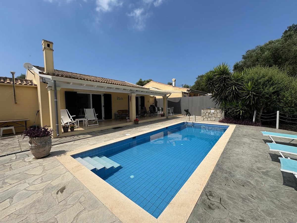 Esta casa fue construida recientemente en medio de olivares y tiene una fantástica vista panorámica del mar y las islas cercanas. Esto hace de este lugar un paraíso para cualquier persona que busque paz y naturaleza. Todas las noches puedes disfrutar de las puestas de sol más hermosas de Corfú mientras cenas al aire libre. Si prefieres ir a un restaurante, se recomienda encarecidamente el hermoso pueblo de Afionas (a poca distancia a pie).