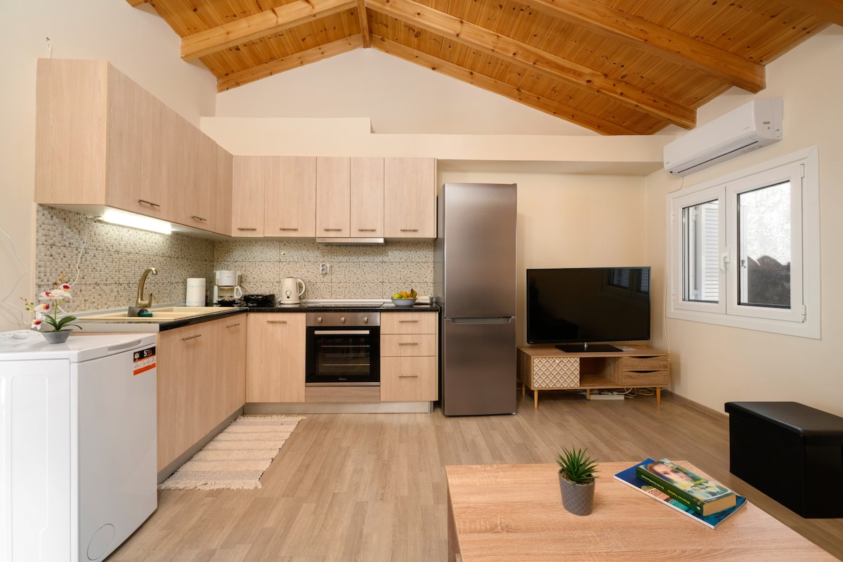Villa Boubouki es una casa tradicional, construida en la década de 1900, que ha sido completamente renovada. Ofrece 45 metros cuadrados de espacio y es ideal para 2 personas (posiblemente 3). Cuenta con una amplia y cómoda sala de estar con cama, con zona de cocina independiente y baño. Cuenta con un jardín de más de 50 metros cuadrados con dos salas de estar rodeadas de flores y hierbas para que nuestros huéspedes las utilicen. Recomendamos alquilar un coche para aprovechar al máximo los alrededores.