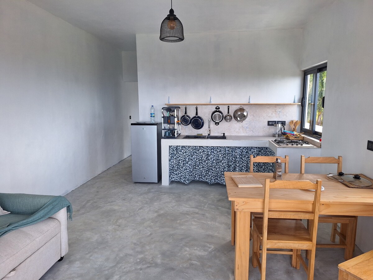 Estamos a 50 metros de la playa más hermosa de Rodrigues, la playa de Saint Francois, y a 30 minutos de Trou D'argent a pie. El estudio está a 300 metros de la terminal de autobuses y tiene un aparcamiento para su coche. Sobrio, limpio, el estudio cuenta con 1 cama doble, un baño con ducha, una pequeña cocina exterior e interior (nevera, horno, microondas, hervidor de agua, etc.) y una terraza con vistas al mar. La habitación también está equipada con un ventilador.