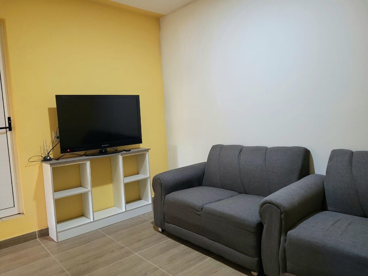 Bienevenidos a Casa QC. Disfruta de la comodidad de este alojamiento. Se encuentra dentro de un fraccionamiento lo que lo hace seguro. Excelente para estadías familiares y de trabajo, ya que tiene 2 camas, una sala de estar y un comedor amplio. Cuenta con WIFI de 60 Megas y TV en la sala, un frigo bar, microondas, cafetera y un sarten eléctrico para cocinar. Queremos que tengas un estadía memorable, cómoda y tranquila, por ello, si tienes alguna duda ¡No dudes en contáctarnos!
