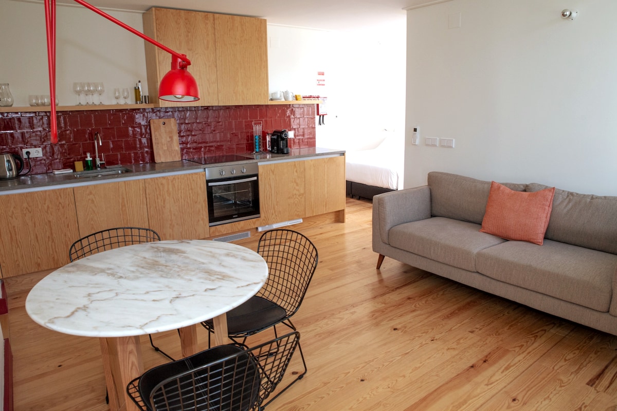 Casa René se encuentra en un hermoso edificio histórico de 1892 y ha sido restaurado a su antigua gloria. Además de este estudio con cocina y terraza privada, tiene otros 5 apartamentos. A 5 minutos a pie, puedes tomar el ferry a través del río Tajo para llegar al centro de Lisboa en 10 minutos. Casa René está cerca de una calle peatonal con numerosos restaurantes y bares locales, pero debido a su buen aislamiento y ubicación en el jardín, sigue siendo muy tranquila, tanto dentro como fuera.