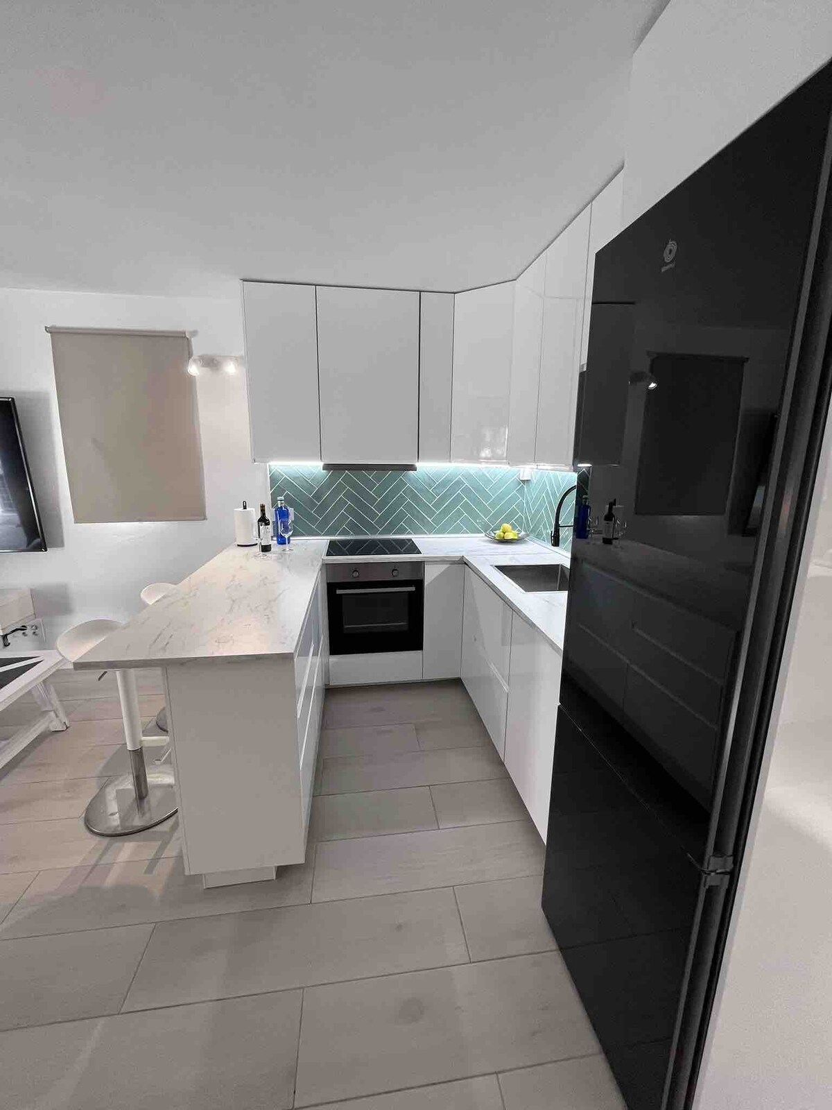 Amplio y luminoso apartamento recién reformado y amueblado en complejo totalmente renovado con piscina comunitaria. Este lujoso apartamento es ideal por su ubicación, en una tranquila calle con gran zona de aparcamiento gratuita, en pleno centro, junto al Pueblo Marinero. A solo un minuto de la playa de Las Cucharas y zona comercial. El apartamento consta de una luminosa cocina abierta con salón-comedor, dos amplios dormitorios y dos baños. Terraza independiente con acceso directo a la piscina.