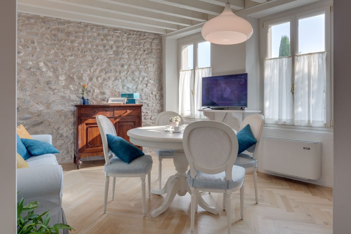 All'interno di Casa Carlottina, un moderno attico dal sapore romantico. Lo divide dalla passeggiata del lungo lago e delle caratteristiche viuzze gardesane solo l'antica scala d'accesso alla residenza. Previa disponibilità, possibilità di prenotazione di due appartamenti comunicanti, fino a 11 posti letto. Strategica posizione per visitare il Lago di Garda e le sue attrazioni come Gardaland, Caneva e Movieland. Possibilità di parcheggio a pagamento.