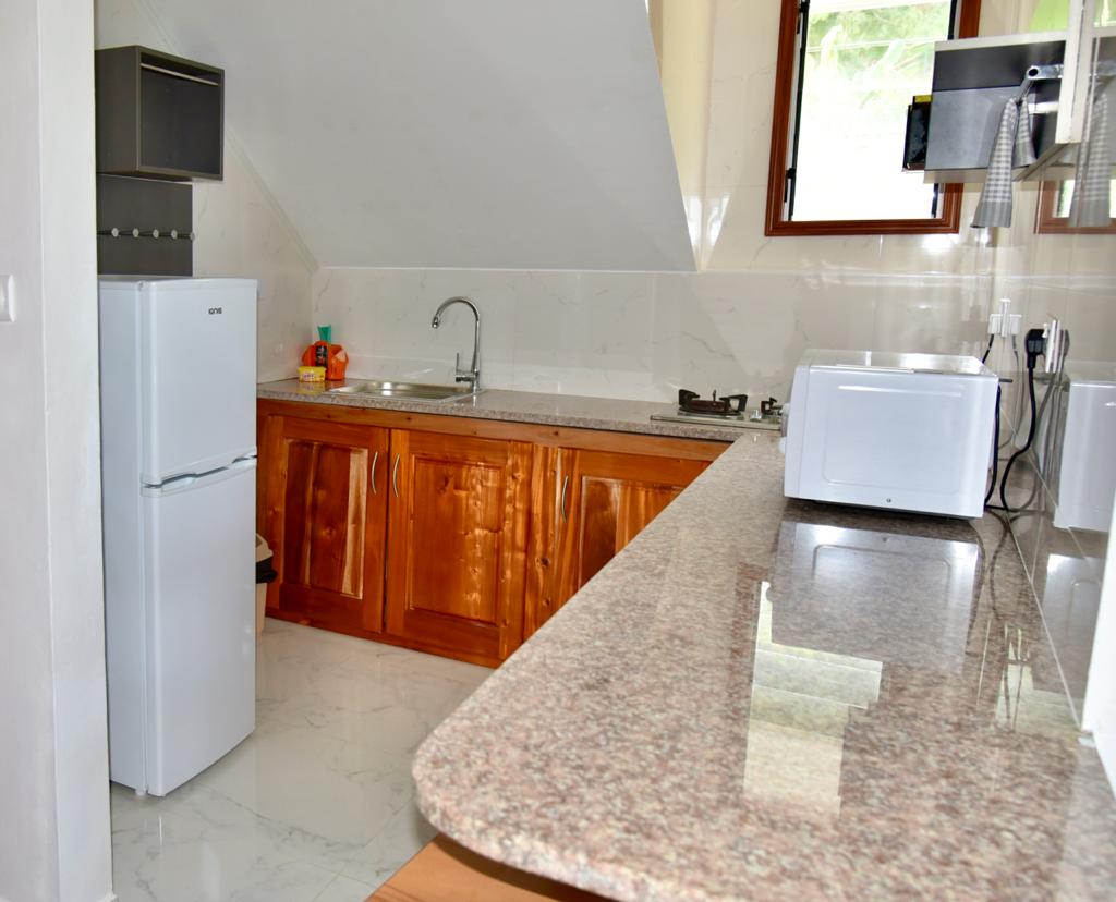 Bienvenido a la habitación «citron vert», que ofrece todo lo necesario para una estancia cómoda en La Digue. Una habitación totalmente climatizada con baño privado, una pequeña cocina privada y terraza, rodeada de un tranquilo jardín. El apartamento es completamente privado y tiene entrada propia. Villa Familia se encuentra en el corazón de la isla, a 200 metros del puerto y de todas las instalaciones, tiendas, restaurantes, playas y parques. Tenemos wifi gratuito en el hotel que funciona en todas las habitaciones y en el jardín.