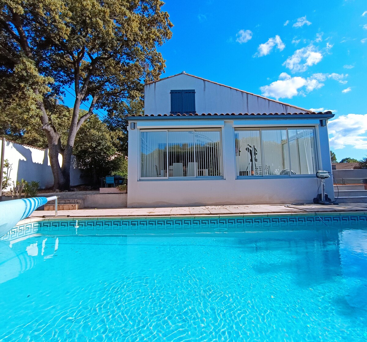 Hermosa villa cerca de Montpellier, Sète y la playa de Frontignan. Disfrutará de mi alojamiento por su ubicación geográfica. Situado en un remanso de vegetación, en el borde de Garrigue en una gran parcela vallada de más de 900 m2 sin vecinos . Gran piscina privada (4m*8m) un profesional pasará a hacer el mantenimiento dos veces por semana. en la propiedad: ping-pong, futbolín, baloncesto y cabaña No incluye sábanas ni limpieza Autobús directo desde la estación de tren de Montpellier centro a Cournonsec.