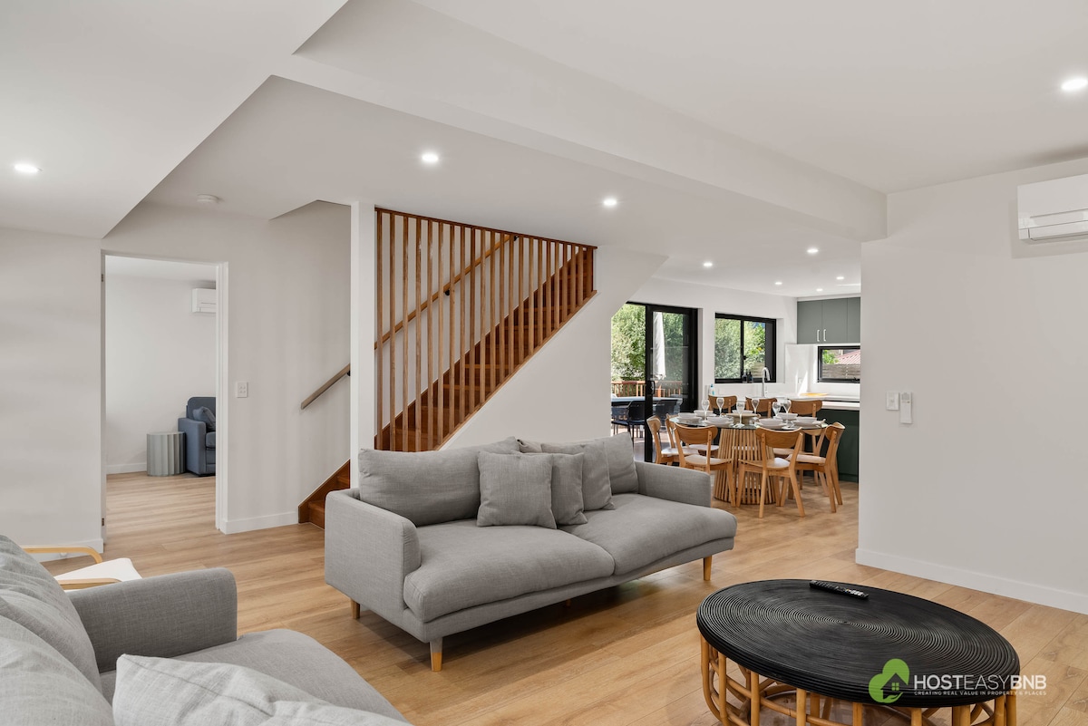 Poet's Corner House en Phillip Island es un refugio tranquilo que combina la comodidad moderna con el encanto costero relajado. Con dos dormitorios tamaño queen, un salón loft iluminado por el sol y una acogedora chimenea, es ideal para parejas, familias o amigos. Prepara comidas en la cocina gourmet o al aire libre en la barbacoa y el horno para pizzas, luego relájate en la hamaca del jardín bajo las estrellas. A minutos de Surf Beach, restaurantes locales y el Desfile de Pingüinos, es una base acogedora para reducir la velocidad, recargar energías y disfrutar de "Island Time".