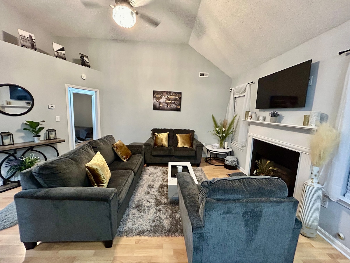 Elm Cozy Cottage es justamente eso. La casa de campo se encuentra en el pintoresco distrito histórico de Elm St. Se encuentra a poca distancia a pie de la plaza histórica, a pocos minutos de tiendas y restaurantes y a 7 minutos de la autopista 85 y del COHCC. La casa está enclavada en una calle tranquila y cuenta con un gran patio trasero vallado equipado con una parrilla y un pozo de fuego para entretenerse. La casa tiene amplios dormitorios, lavadora y secadora nuevas y un rincón de oficina en la esquina. El alojamiento admite mascotas, pero ten en cuenta nuestra política de mascotas.
