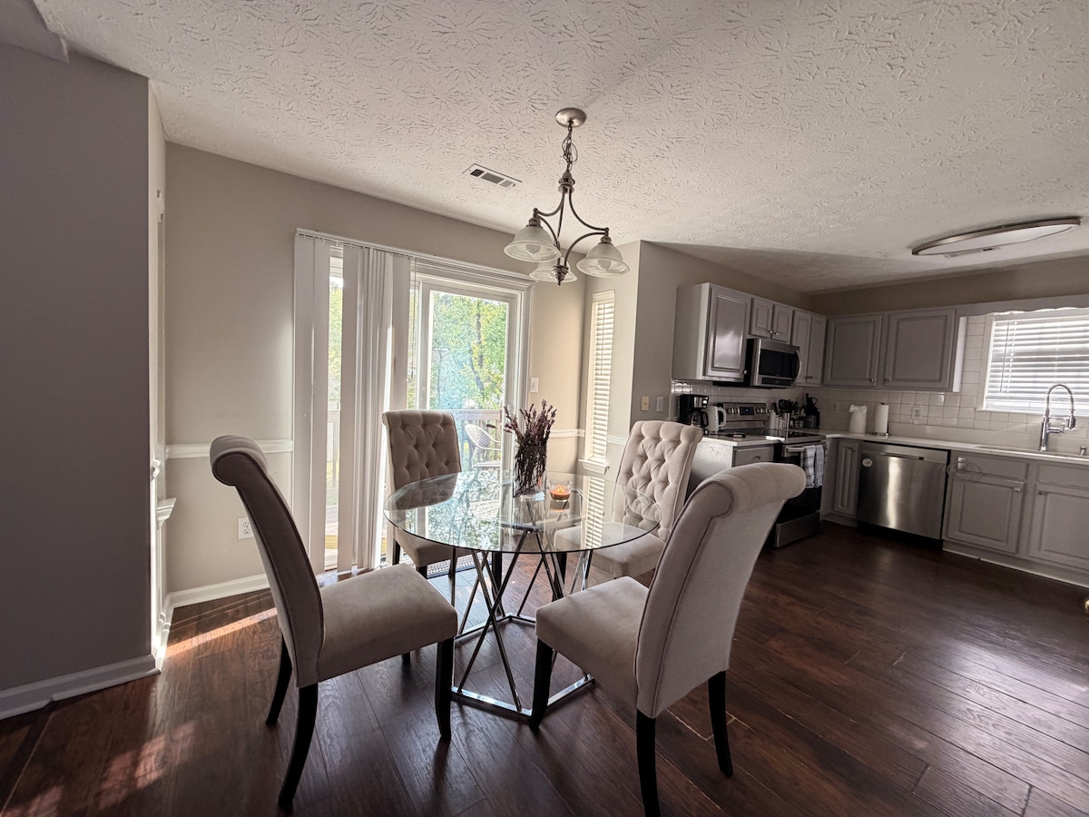 Descubre la tranquilidad en The Newnan Home, a solo un latido del Hospital Piedmont, ideal para el personal médico o las familias que necesitan una estancia relajante. Esta serena morada, ubicada en 231 Village Park Drive, ofrece un amplio espacio para hasta 8 huéspedes, por lo que es perfecta para reuniones de grupo o retiros de la iglesia. Además, con el aeropuerto ATL convenientemente cerca, es un refugio para los viajeros que buscan comodidad y facilidad.
