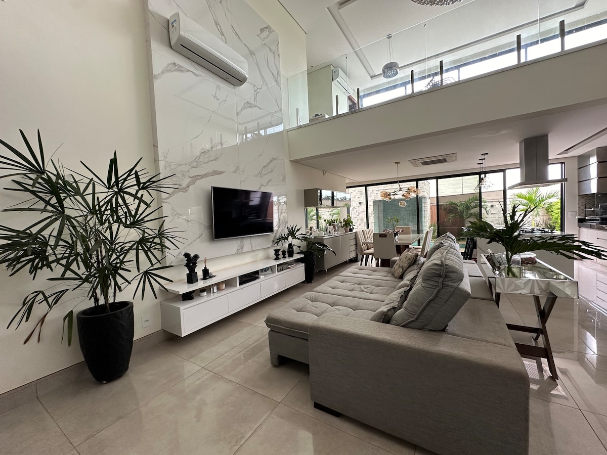 Atención: NO SE PERMITEN VISITANTES, ¡la casa es para USO EXCLUSIVO DE LOS HUÉSPEDES! Una casa de alta gama en una comunidad cerrada, la casa tiene 3 suites con aire acondicionado dividido, un televisor de 75" en la sala de estar, una gran cocina, equipada con un refrigerador de lado a lado y todos los utensilios necesarios, una barbacoa de carbón, una piscina para los días más calurosos y 4 plazas de aparcamiento. Condominio de fácil acceso por Rodovia Anhanguera. Se REQUIERE que todos los huéspedes tengan acceso al condominio.
