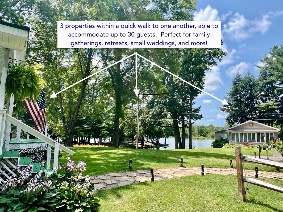 PERFECTO PARA REUNIONES/RETIROS FAMILIARES de hasta 30 huéspedes en 3 propiedades vecinas. Bicicletas, 4 fogatas, 2 mesas de fuego de propano, 4 amplias terrazas grandes, 2 sótanos terminados, camas cómodas. ¡Excelente WIFI! Altavoces Sonos, electrodomésticos nuevos, SALA DE JUGUETES surtida, ping pong, corn hole, freidoras de aire. Campos de golf, estación de esquí, cervecería artesanal a pocos minutos. Todo lo que necesitas traer es ropa y comida. ¡Te esperan vida silvestre, naturaleza y recuerdos para toda la vida! A 2 horas de Pittsburgh, Cleveland y Buffalo, a medio camino entre Nueva York y Chicago.
