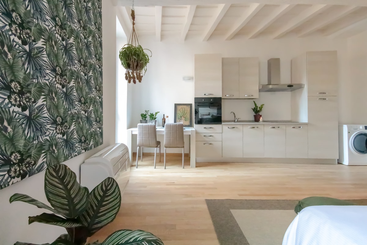 El departamento está ubicado dentro del Palazzo Chizzola, una residencia del siglo XVI en el centro histórico. La casa permite a los huéspedes pasar estancias agradables inmersas en un ambiente de épocas pasadas. Los espacios representativos dan la posibilidad de transformar la casa en un "salón de negocios" tanto para reuniones en el lugar como para videollamadas. La casa se encuentra a pocos pasos de lugares de interés histórico y artístico como el Teatro Grande e Sociale, la Pinacoteca, el Museo Santa Giulia, el Duomo.