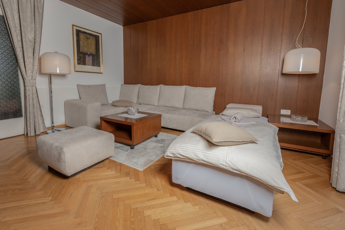 Nuestro ático, ubicado bajo el icónico castillo de Ljubljana, es una mezcla armoniosa de historia y lujo moderno. Esta joya arquitectónica se encuentra dentro de un monumento cultural que ofrece un oasis en el centro de la ciudad, una zona tranquila, con muebles elegantes donde la historia y la modernidad coexisten armoniosamente. Estás a pocos pasos de las principales atracciones (mercado, funicular, puente del dragón, estación principal de autobuses y trenes). La mejor ubicación de la ciudad, en la encrucijada del tapiz cultural de Liubliana.