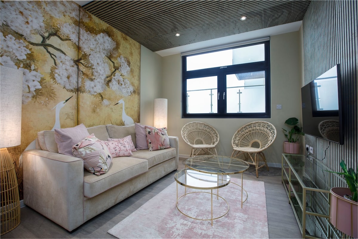 Nuestro departamento temático de 73 metros cuadrados y 1 dormitorio puede alojar hasta 4 personas. Disfruta de muebles modernos, una cocina totalmente equipada con lavadora y lavavajillas, un amplio baño con ducha, una cómoda cama tamaño súper king y un sofá cama para todos los huéspedes. Ubicado en un edificio con ascensor, aprovecha el estacionamiento gratuito, el wifi súper rápido y el acceso a un gimnasio compartido y un espacio de trabajo de oficina. Está a pocos minutos de la estación de tren de Orpington, con fácil acceso al puente de Londres. POTENCIAL DE RUIDO, LEE A CONTINUACIÓN.