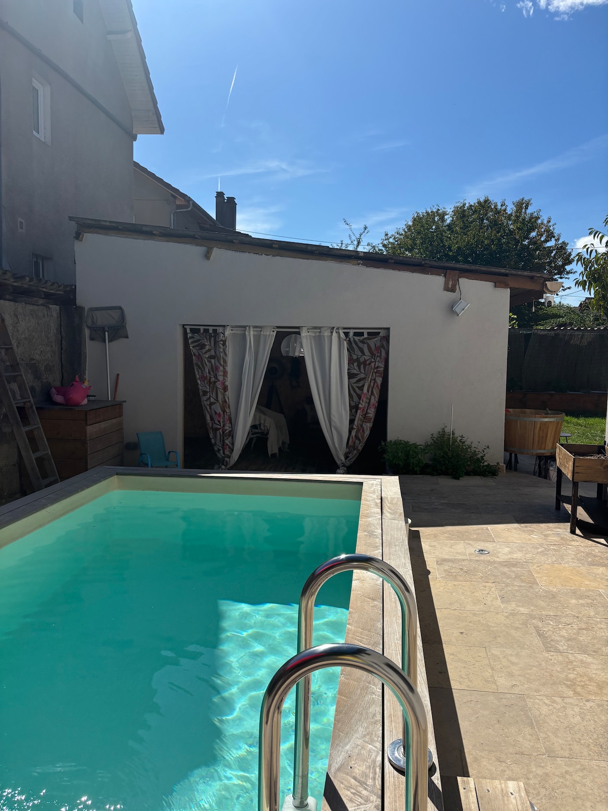 Nuestra villa, Kyo-Alpes, construida en 2024, está situada en La Combe de Lancey, entre Chambéry y Grenoble, y ofrece impresionantes vistas a las montañas. El alojamiento cuenta con una piscina cubierta privada climatizada a 29 °C, un espacio de jacuzzi y una sauna, para relajarse en un ambiente zen y relajante. Una decoración interior inspirada en el estilo japonés aporta elegancia y originalidad. Venga a descubrir la naturaleza circundante y el encanto de Japón en el corazón de los Alpes