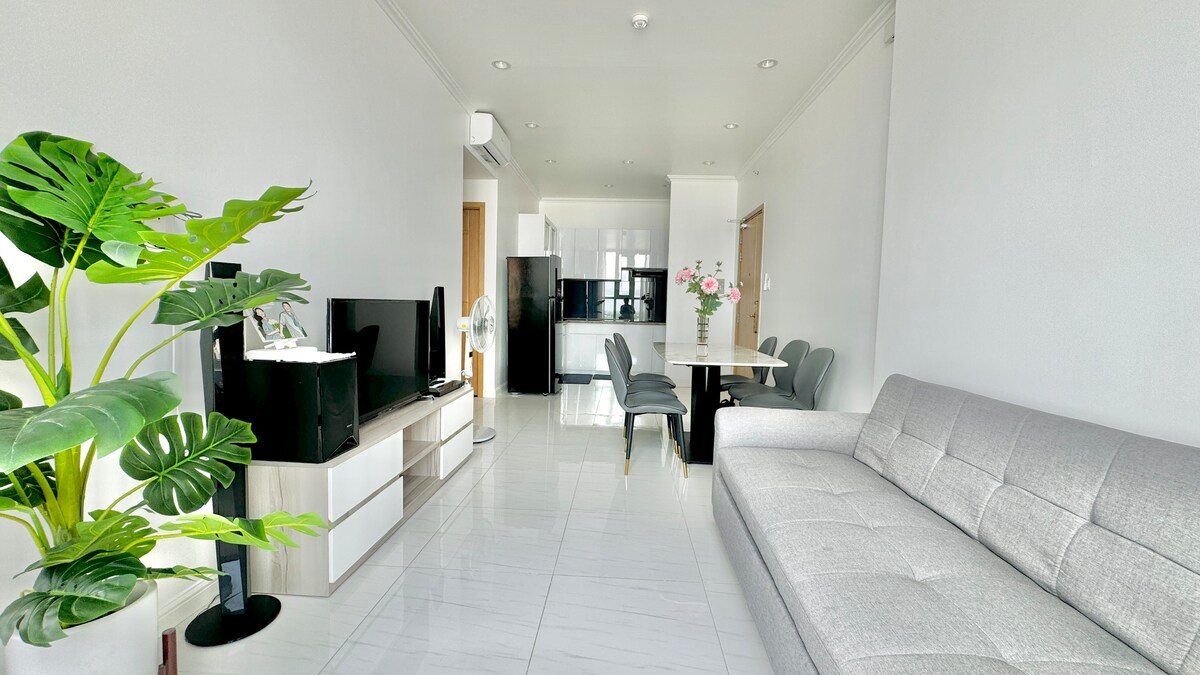 Apartamento de 1 habitación tranquilo, limpio y moderno en el corazón de Long Xuyến. El departamento está en el piso 12, ofrece un espacio tranquilo con un diseño minimalista y luz natural; se puede ver la puesta de sol directamente desde el balcón. Completamente equipado con cocina, microondas, lavadora, agua caliente, Wi-Fi de alta velocidad y televisor inteligente con YouTube y Netflix. El gimnasio está en la planta baja. Vincom Plaza está al lado para ir de compras y comer. Ideal para parejas, viajeros solitarios y estancias de negocios.