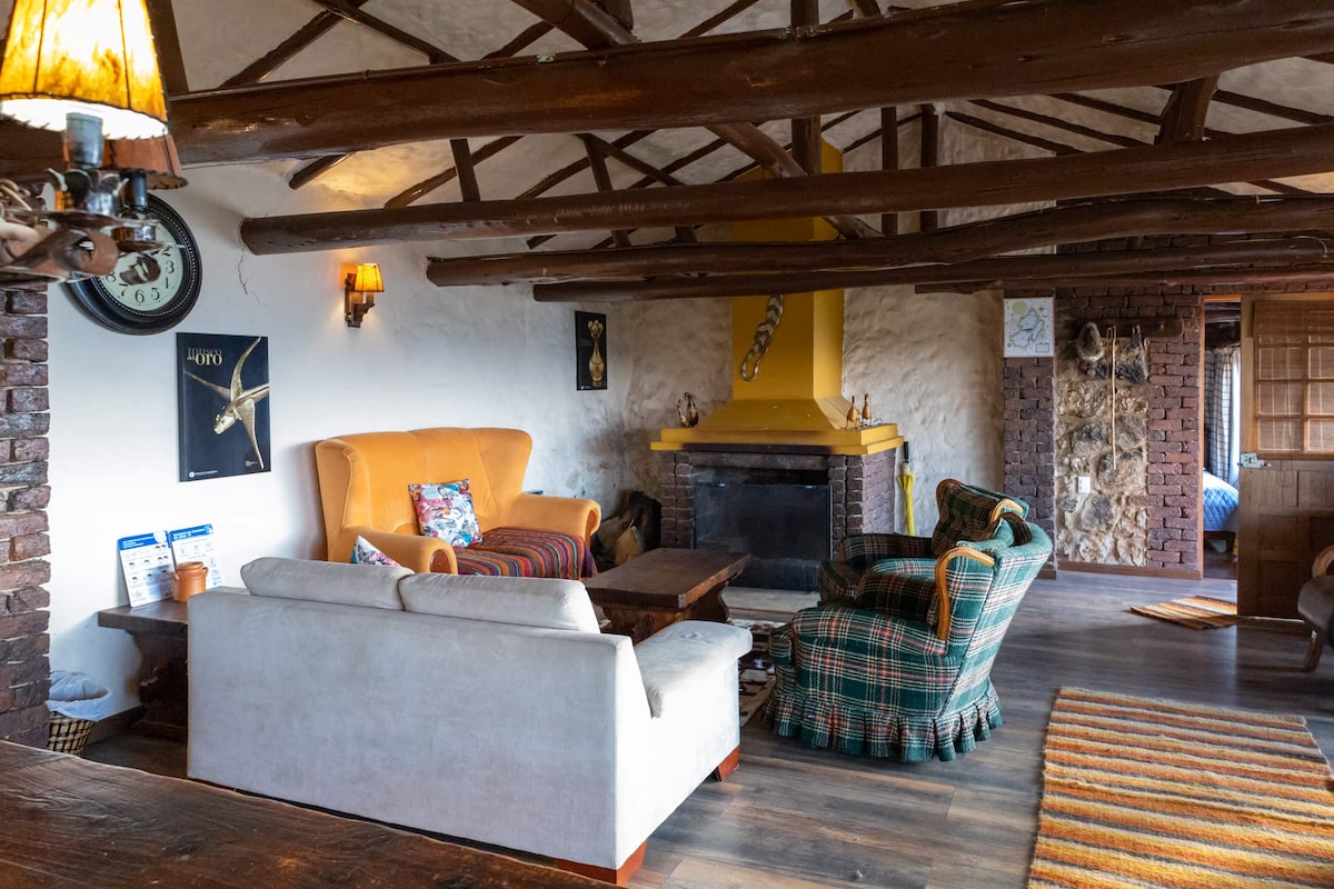 Chalé con fogata exterior y WIFI, Pet friendly! RESTAURANTE A DOMICILIO Diseñado para el confort, cuenta con vista a la LAGUNA DE TOTA desde la comodidad de la cama, bien equipada con nevera, microondas, sanduchera, hervidor de agua eléctrico, estufa de inducción sus utensilios, platos, vasos, cucharas, te dejamos café, panela, azúcar, aromáticas, sal, aceite, también hay copas, destapa corchos. En el baño puedes encontrar toallas, jabón de manos, jabón de cuerpo y champo.