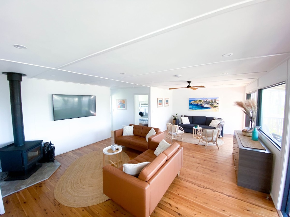 Relájate al instante mientras disfrutas de las impresionantes vistas costeras desde este elegante espacio, a solo 90 minutos al sur de Sídney y a 700 metros a pie de Seven Mile Beach. Abre las puertas plegables para sentir la brisa del mar y ampliar el espacio hasta una amplia terraza. O acurrúcate junto a la chimenea en los meses más fríos. Con el servicio de desayuno y la zona de estar al aire libre, tendrás muchos lugares para reunirte. Tu perro puede correr libremente en el patio cubierto de hierba y totalmente vallado, y disfrutar de las playas de la región aptas para perros.